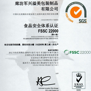 在同行業(yè)中,軍興溢美率先通過FSSC22000食品安全體系認證。